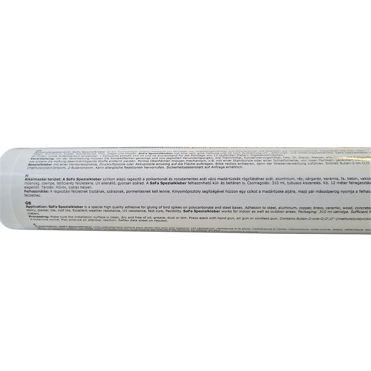 Speciális ragasztó, kimondottan a galambriasztó tüskéink felragasztásához. Alkalmazható mind a polikarbonát, mind a rozsdamentes acél alapú modelleknél. Szinte minden felületen felhasználható: acél, alumínium, műanyag, fa, kerámia, vakolat, csempe, réz, tetőcsrép.